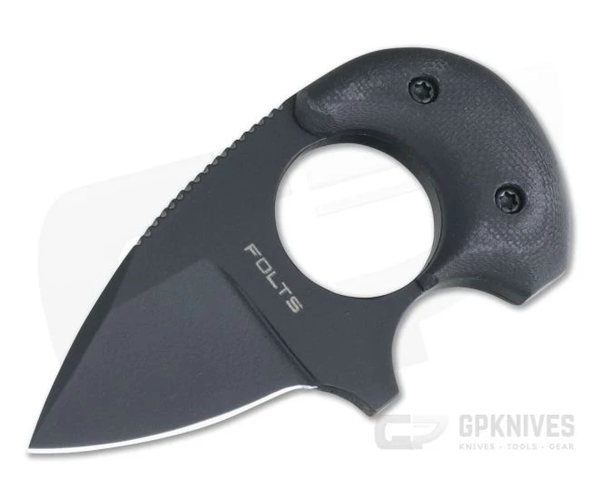 Handle:Â Smooth and contoured matte black G10 handle scales are attached via black Torx screw hardware for an overall stealth look paired with the black coated blade. The single finger ring hole is very secure and comfortable in the hand.