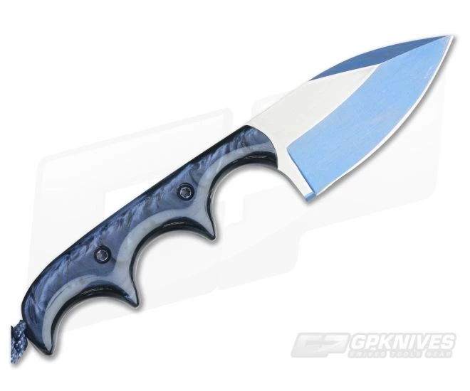 Handle:Â Three deep finger grooves and attached lanyard create a secure and ergonomic grip. The addition of the lanyard extends the 3-finger grip to fill most hands. Smooth and contoured Blue Pearl Kirinite acrylic handle scales are attached via Torx screw hardware.