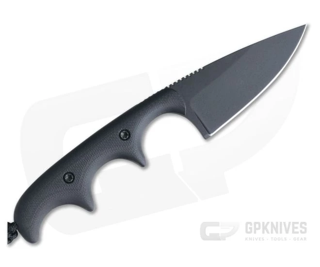 Handle:Â Three deep finger grooves and attached lanyard create a secure and ergonomic grip. The addition of the lanyard extends the 3-finger grip to fill most hands. Blasted, matte black G10 handle scales are attached via Torx screw hardware providing a secure and reliable grip.