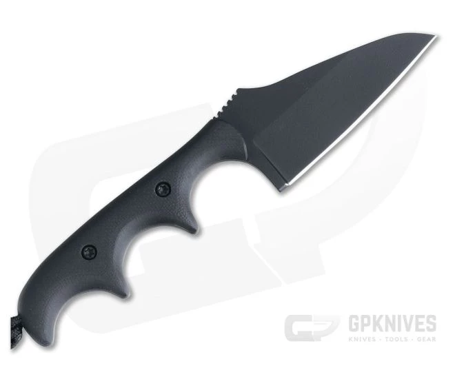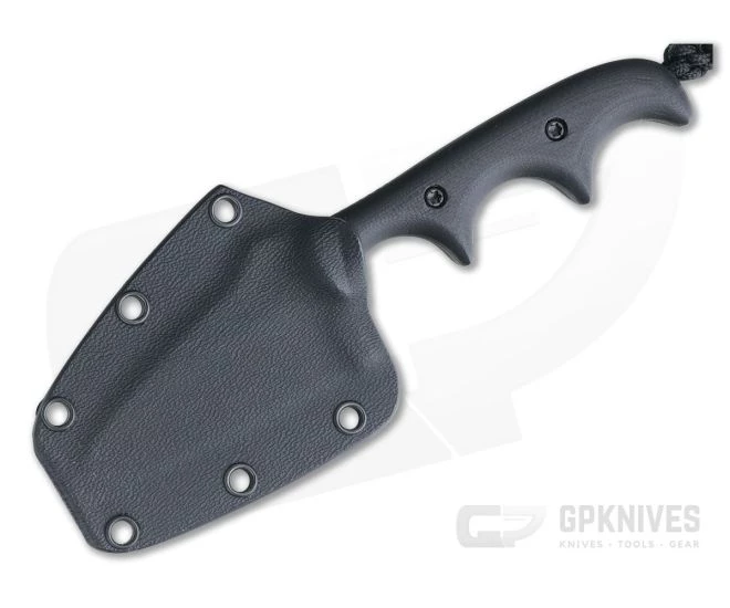 Handle:Â Three deep finger grooves and attached lanyard create a secure and ergonomic grip. The addition of the lanyard extends the 3-finger grip to fill most hands. Blasted and contoured black G10 handle scales are attached via black Torx screw hardware and provide a secure, high traction grip rounding out the stealth aesthetic of this piece.