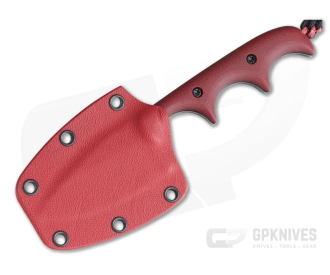 Handle:Â Three deep finger grooves and attached lanyard create a secure and ergonomic grip. The addition of the lanyard extends the 3-finger grip to fill most hands. Blasted, matte Red G10 handle scales are attached via Torx screw hardware over black liners providing a secure and reliable grip.