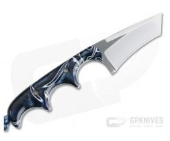 Alan Folts Custom Minimalist Tanto is a small everyday carry fixed blade made to be minimal in size (hence the name) while offering maximum function. The lightweight, well-balanced design doesn’t take up much space making it a perfect choice for discreet every day carry. This version comes with a polished two-tone, CPM-154 Tanto blade and Blue Kirinite Acrylic handles.
