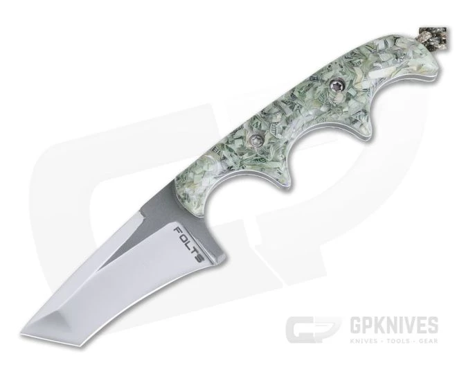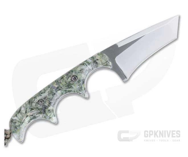 Alan Folts Custom Minimalist Tanto is a small everyday carry fixed blade made to be minimal in size (hence the name) while offering maximum function. The lightweight, well-balanced design doesn’t take up much space making it a perfect choice for discreet every day carry. This version comes with a polished two-tone, CPM-154 Tanto blade and “Cash” Custom Acrylic handles.