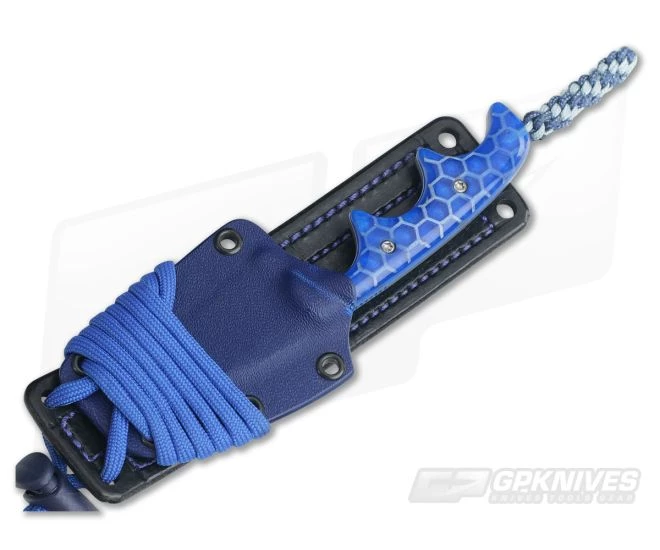 Handle:Â Three deep finger grooves and attached lanyard create a secure and ergonomic grip. The addition of the lanyard extends the 3-finger grip to fill most hands. Smooth and contoured Blue Honeycomb acrylic handle scales are attached via Torx screw hardware.