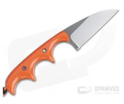 Alan Folts Custom Minimalist Wharncliffe is a small everyday carry fixed blade made to be minimal in size (hence the name) while offering maximum function. The lightweight, well-balanced design doesn’t take up much space making it a perfect choice for discreet every day carry. This version comes with Polished Orange G10 handles and a Polished Two-Tone CPM-154 blade.
