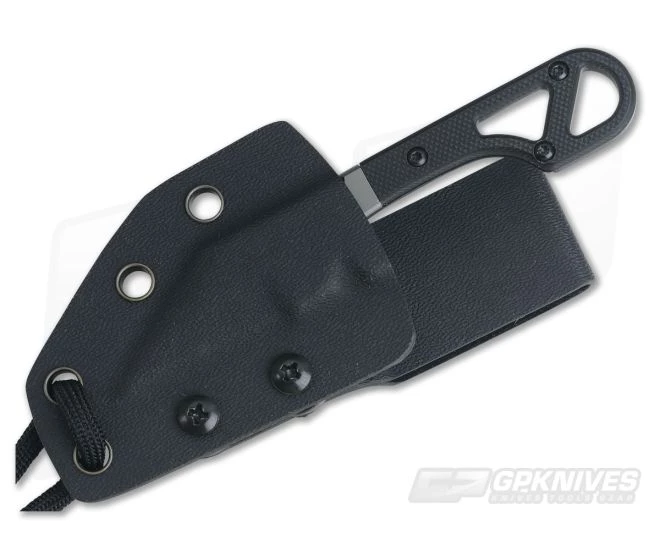 Carries via a custom molded Kydex sheath with paracord neck lanyard or Kydex belt loop.