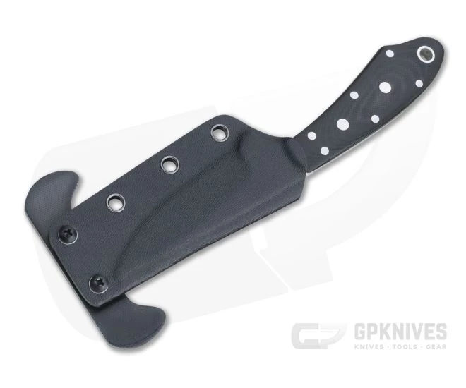 Handle: Slim and contoured, the smooth G10 handle scales are attached to the full tang blade with multiple, decorative stainless steel pins. The design offers a secure hold in multiple grips with minimal carry profile. A hollow stainless tube allows for lanyard attachment. The Kydex sheath comes with a double-sided hook for front pocket carry, leather plate for back pocket carry or a stainless ball chain for neck carry.