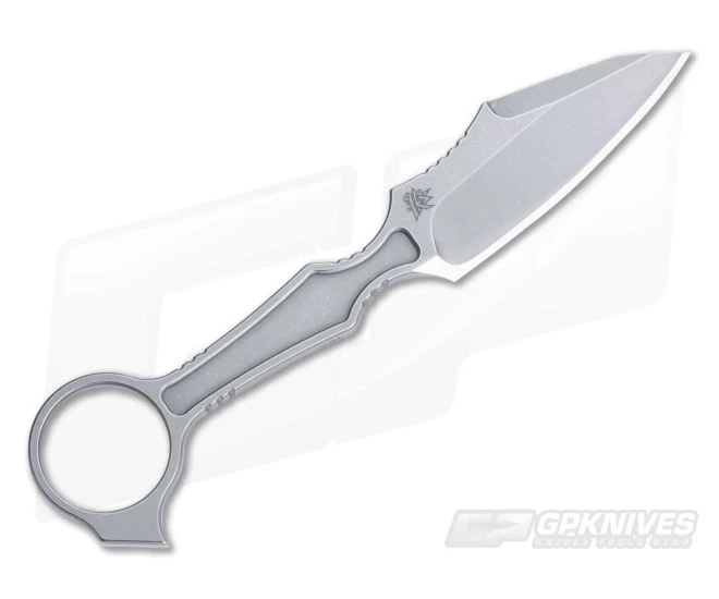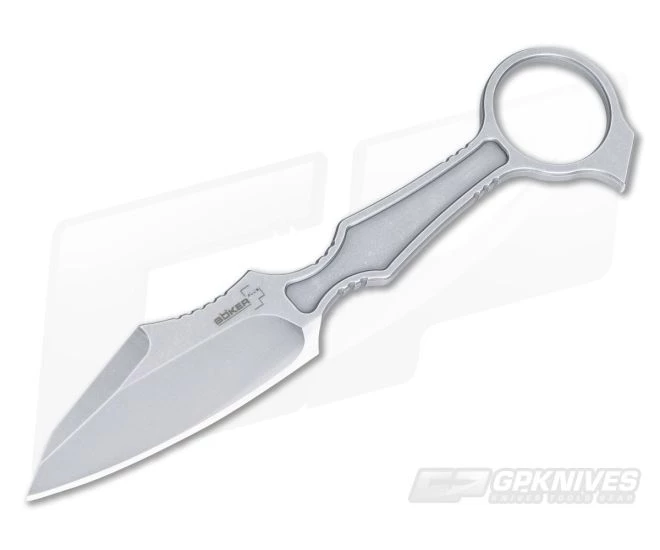 The GITFO is a small fixed blade combat/self-defense knife designed by DJ Urbanovsky. It’s made out of one piece of stainless steel with integrated ring at the end of the handle. This adds many different grip and handling options and makes for a great back up. The blade has a sheepsfoot style with a false top edge and a nice tumbled finish. Deep jimping on the thumb rest and in other strategic areas of the handle results in additional traction for a better grip. Includes slim kydex sheath, belt clip adapter and ball chain to convert to a large neck knife. Brand new direct from Boker.