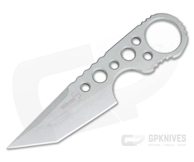 Handle:Â The full tang handle is skeletonized for weight reduction and traction with strategic jimping and a ring end for enhanced security. The three-finger grip is secure and comfortable while offering a compact footprint for discreet carry on the belt or as a neck knife. The 4mm thickness is plenty robust for durability and paracord can be added easily for added comfort in the grip.