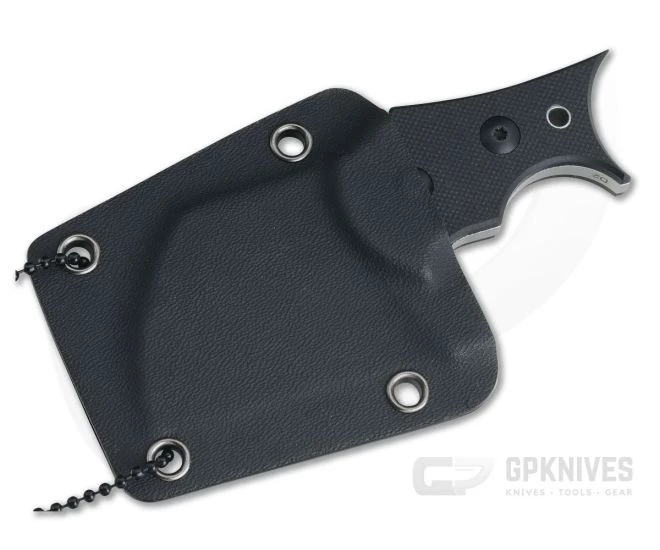 Carries via a custom molded Kydex sheath with ball chain for neck carry.