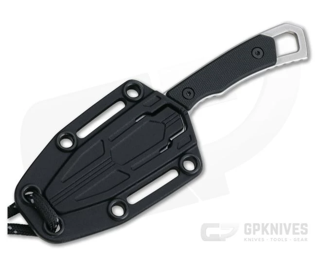 A utilitarian and minimalist design, the Brace fixed blade neck knife is as simple and functional as you can get. Solid stainless steel construction is rugged and easy to maintain with GFN scales for a secure grip and reversible polymer sheath for secure carry in any direction or blade orientation. Just under 2 inches of razor sharp hollow ground cutting edge is enough to handle a wide variety of cutting tasks while the sub-2 ounce package weight is ideal for lightweight enthusiasts.