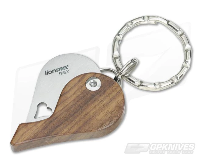 The LionSteel LionBeat Santos is the perfect accessory for the knife admirer. Â Versatile, the LionBeat can be used as a Key Chain, Pendant or Zipper Pull. Â The small friction folder features a chisel ground AISI 440 stainless steel blade operating on a single torx pivot. Â Santos wood handle houses the blade and when in the closed position, the LionBeat forms an attractive heart silhouette accented by a heart shaped cutout in the blade. Â Includes a key ring and can be easily transitioned to a pendant. Â Brand new directly from LionSteel, Italy.
