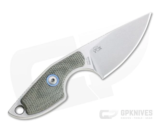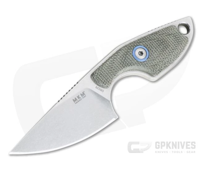 Designed by prolific Danish custom knife maker Jesper Voxnaes, the MKM Mikro is a high quality, fixed blade neck knife that is built for everyday carry and utility with premium materials and versatility in carry. Available in two blade styles and five handle variations there is sure to be a Mikro that suits your personal style. The Mikro 1 has a drop point blade of stonewashed Bohler M390 stainless steel. This version comes with Green Canvas Micarta handle scales.