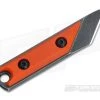 The Handle: A single solid piece of black G10 is mounted to one side of the knife with two Allen head bolts. The scale and blade tang are chamfered to offer a surprisingly comfortable and secure grip on this diminutive cutting tool.