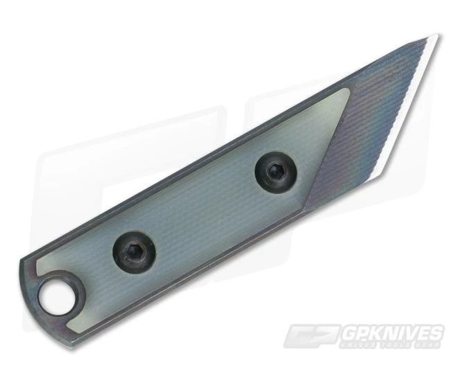 The Handle: A single solid piece of Jade G10 is mounted to one side of the knife with two black Allen head bolts. The scale and blade tang are chamfered to offer a surprisingly comfortable and secure grip on this diminutive cutting tool.