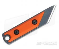 The Handle: A single solid piece of Orange G10 is mounted to one side of the knife with two black Allen head bolts. The scale and blade tang are chamfered to offer a surprisingly comfortable and secure grip on this diminutive cutting tool.