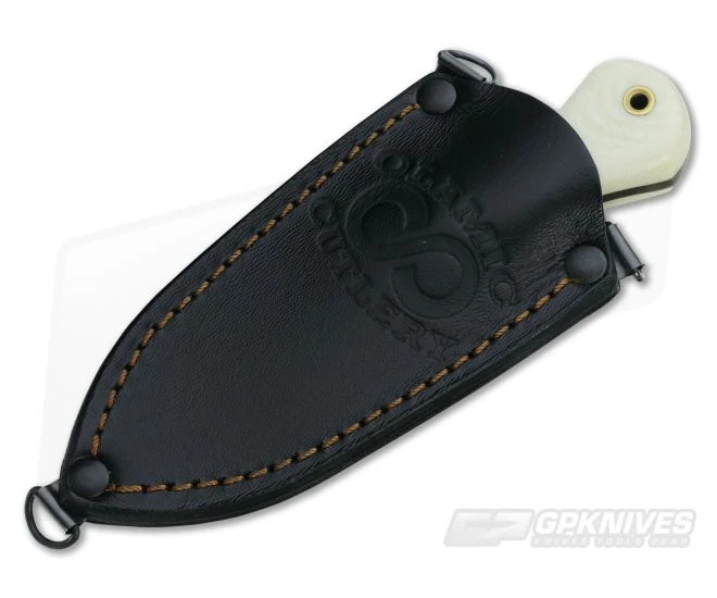 New from Olamic Cutlery comes the double edged Dagger Neck Knife built from high carbon vanadium Damascus steel and White G10. Lightweight, comfortable and purposeful. The dependable backup comes in a stitched leather sheath with lashing points for carry.