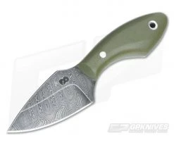 The Olamic Spear Necker is a lightweight, comfortable and purposeful backup perfect for EDC. Â Just over 5 inches long with single edged, piercing spear point and earthy OD green G10 handle scales.