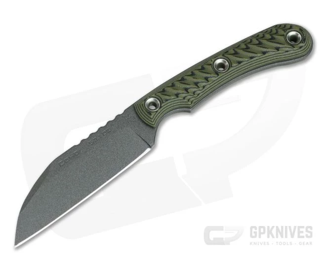 The RMJ Tactical Coho is an excellent every day carry fixed blade with a robust Wharncliffe blade that is one of the most utilitarian blade shapes around. RMJ Tactical executes the Coho with the utmost precision delivering the exceptional fit and finish their products are known for. This version of the Coho is made from super tough, tungsten Cerakote coated, 52100 ball bearing steel and 3D milled and contoured Dirty Olive (black and green) G10.