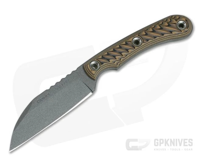 The RMJ Tactical Coho is an excellent every day carry fixed blade with a robust Wharncliffe blade that is one of the most utilitarian blade shapes around. RMJ Tactical executes the Coho with the utmost precision delivering the exceptional fit and finish their products are known for. This version of the Coho is made from super tough, tungsten Cerakote coated, 52100 ball bearing steel and 3D milled and contoured Hyena Brown (brown, tan & black) G10.