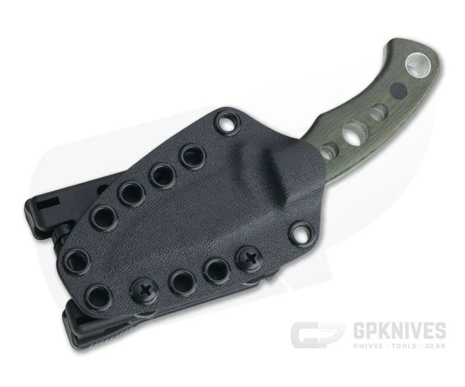Handle:Â Ergonomically designed, polished Green Linen Micarta handle scales are contoured for unparalleled comfort in the hand with speed hole milling for enhanced traction. Shaped with two subtle finger grooves, the handle design locks the hand in without compromising versatility for multiple grips. The scales are attached via two black Micarta pins and a hollow lanyard tube.