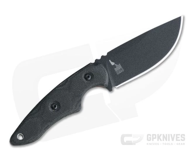 Handle:Â Contoured slabs of black canvas Micarta are attached to the full tang over contrasting red liners, securely attached with black Allen hardware. The deep index choil and spine jimping pair to offer security and control in use. Canvas Micarta provides a secure grip even when wet and is exceptionally durable and resistant to moisture. A distal taper allows for a secure grip with minimal carry profile. A hollow tube is provided for lanyard attachment.