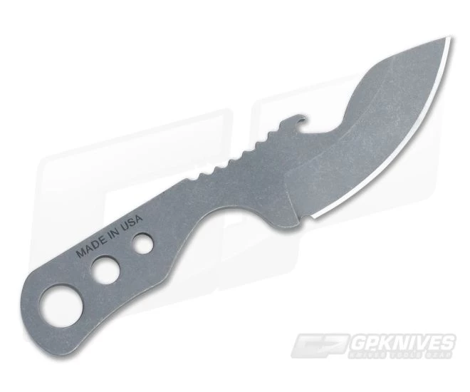 The Blade:Β This version gives its user just over two inches of upswept slicing ability slightly hollow ground to a razor’s edge. Its fully tumbled finish is handsome plus it was given a clear Cerakote layer to help protect it from rust. A bottle opener is cut into the spine just ahead of the one inch notched thumb ramp. The combination of lime-slicing cutting power and bottle opening talents make this one handy little blade.