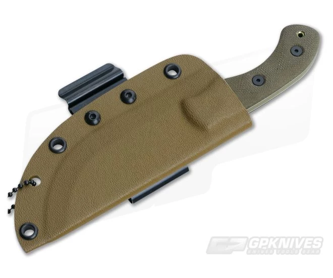 Included with this #4 Coyote Tan version is a coyote tan Kydex sheath with a multi-position spring steel mounted belt clip for carry. It can easily be re-positioned or removed for neck carry.Â